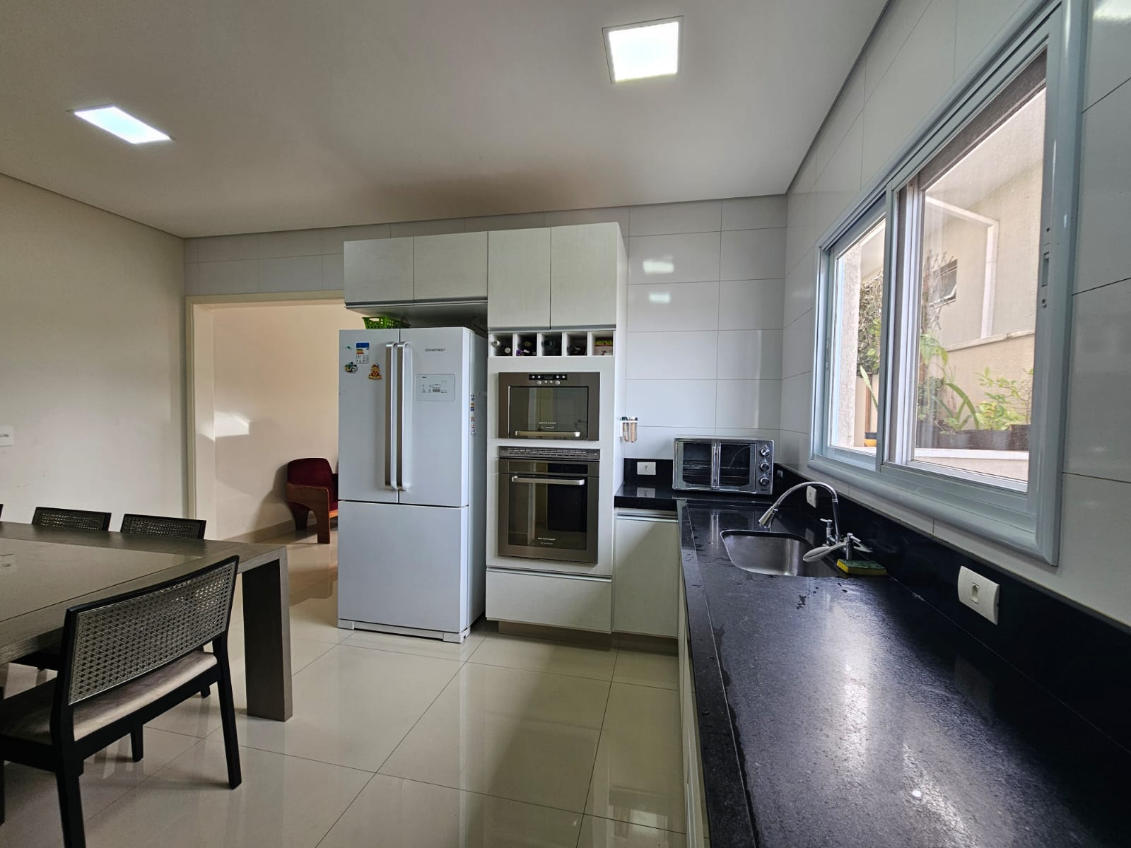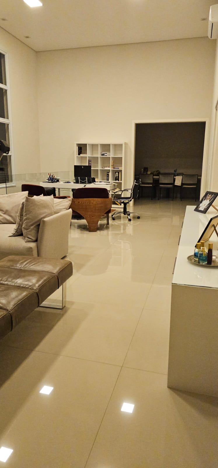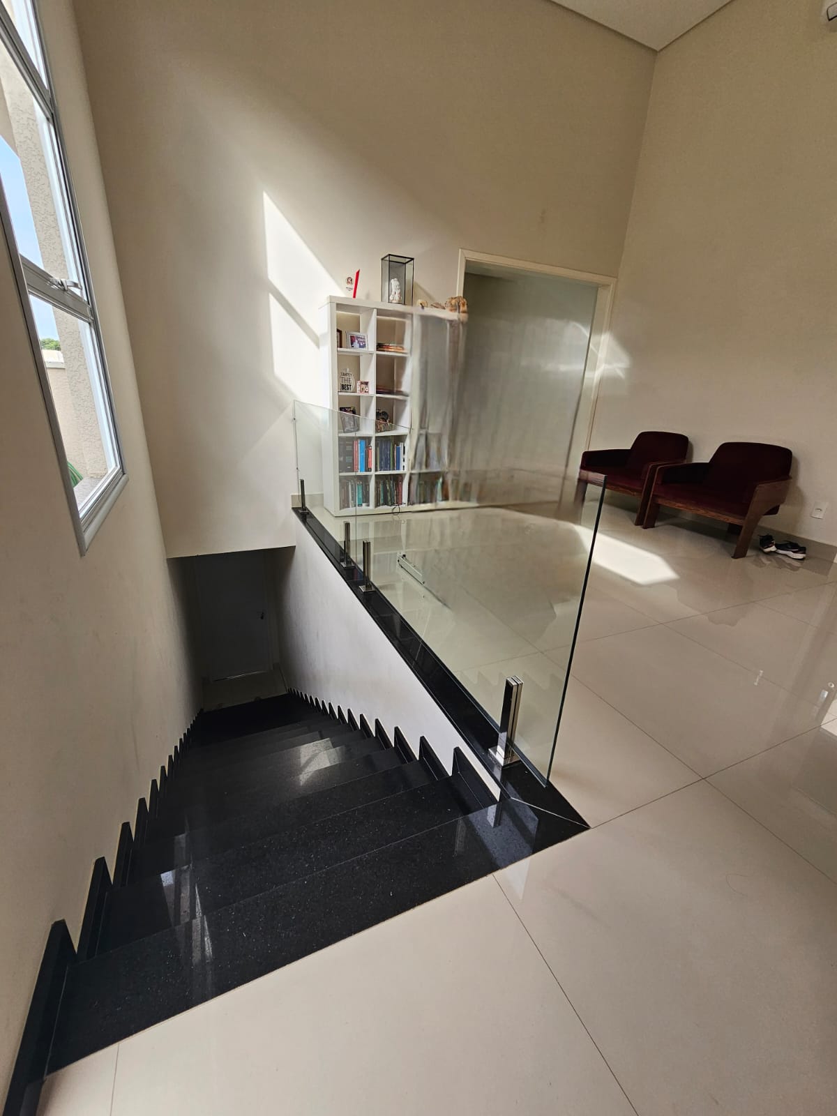O imóvel conta com sala com pé direito duplo bem iluminada, 3 suites sendo uma master, todas com ar condicionado e armários planejados, 1 escritorio, cozinha espaçosa equipada com eletros Brastemp Gourmand, despensa, 5 banheiros, area social privativa na parte inferior da casa com churrasqueira, deck e banheiro, energia fotovoltaica e vaga para 4 veículos. Agende ja sua visita!