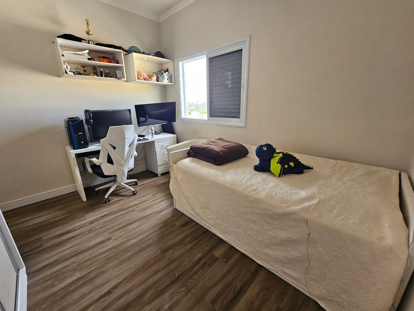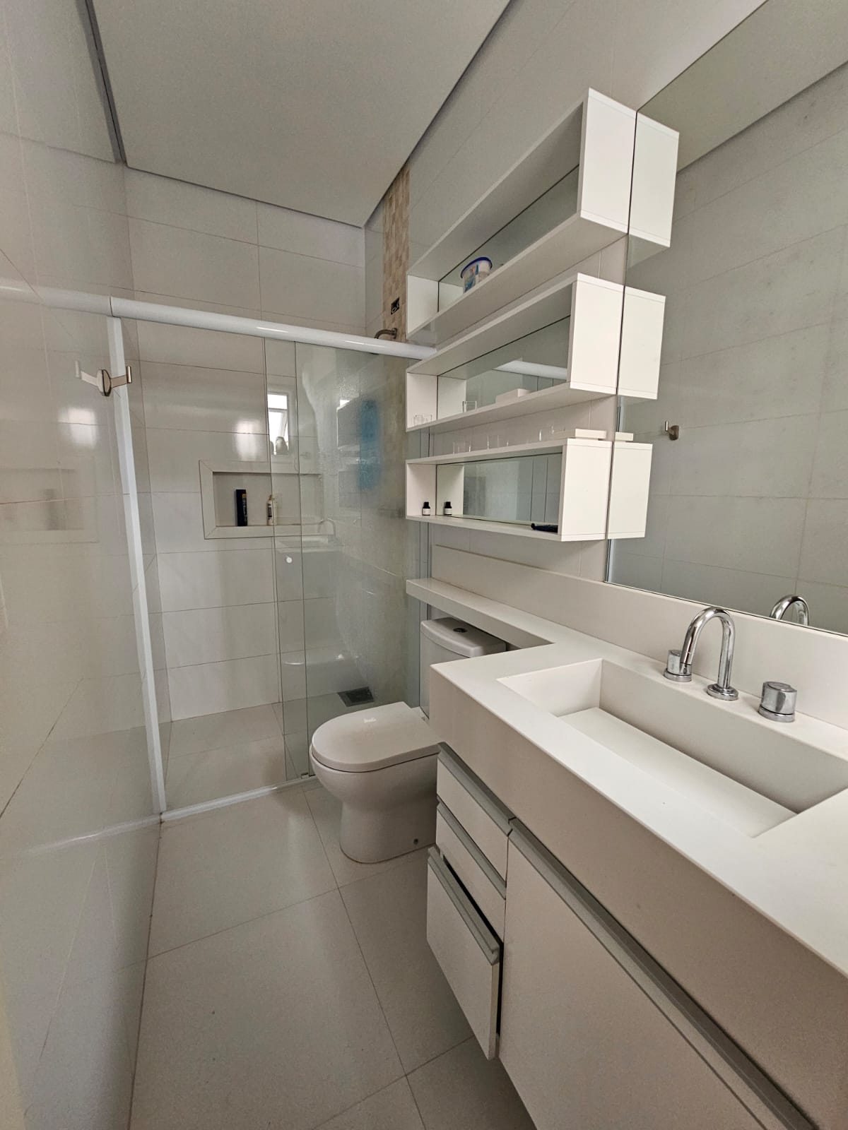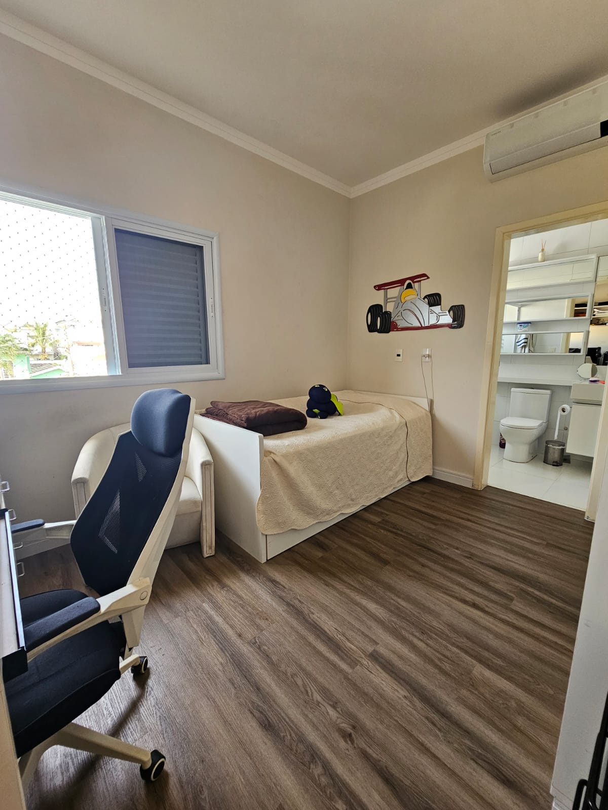 O imóvel conta com sala com pé direito duplo bem iluminada, 3 suites sendo uma master, todas com ar condicionado e armários planejados, 1 escritorio, cozinha espaçosa equipada com eletros Brastemp Gourmand, despensa, 5 banheiros, area social privativa na parte inferior da casa com churrasqueira, deck e banheiro, energia fotovoltaica e vaga para 4 veículos. Agende ja sua visita!