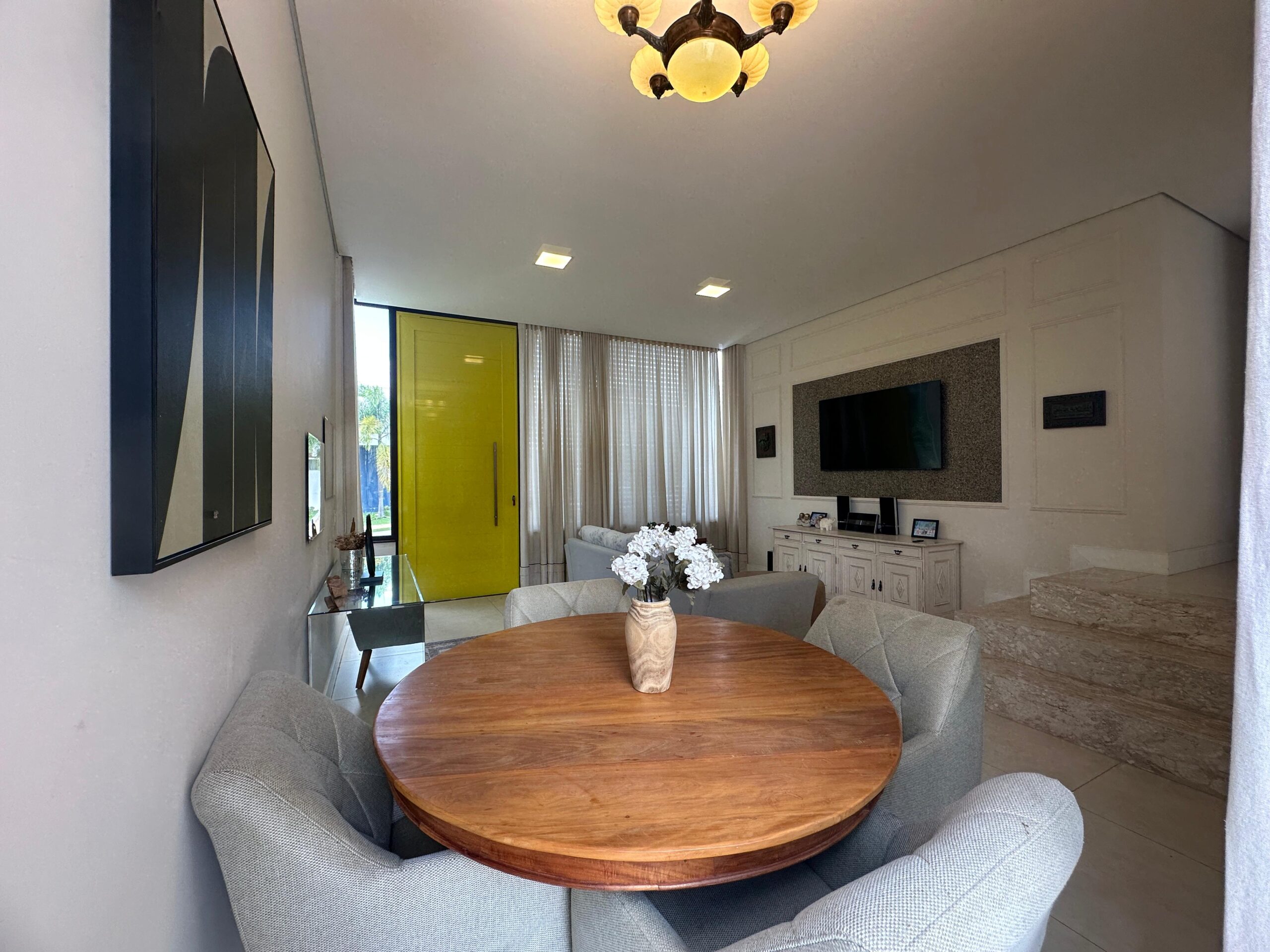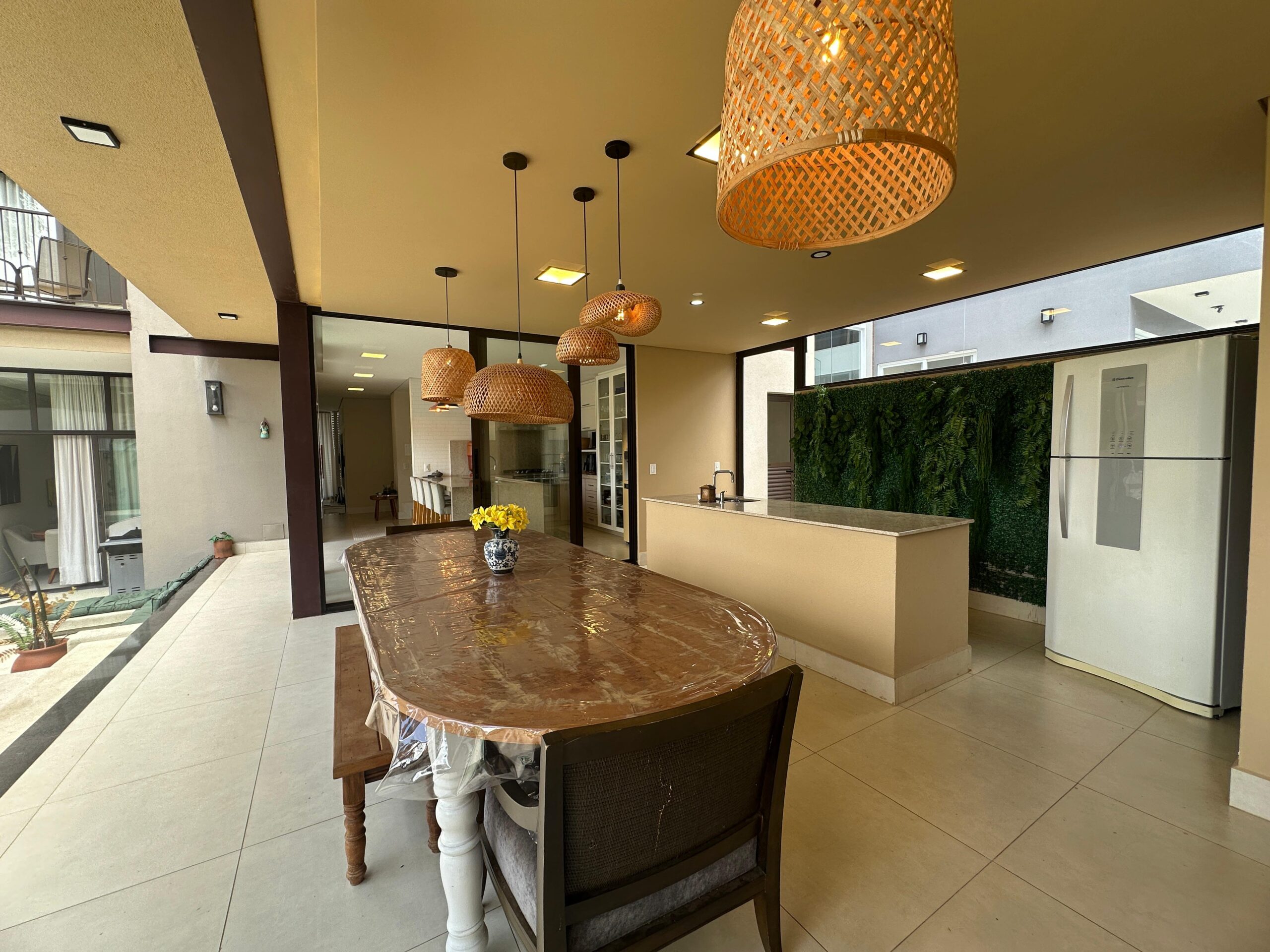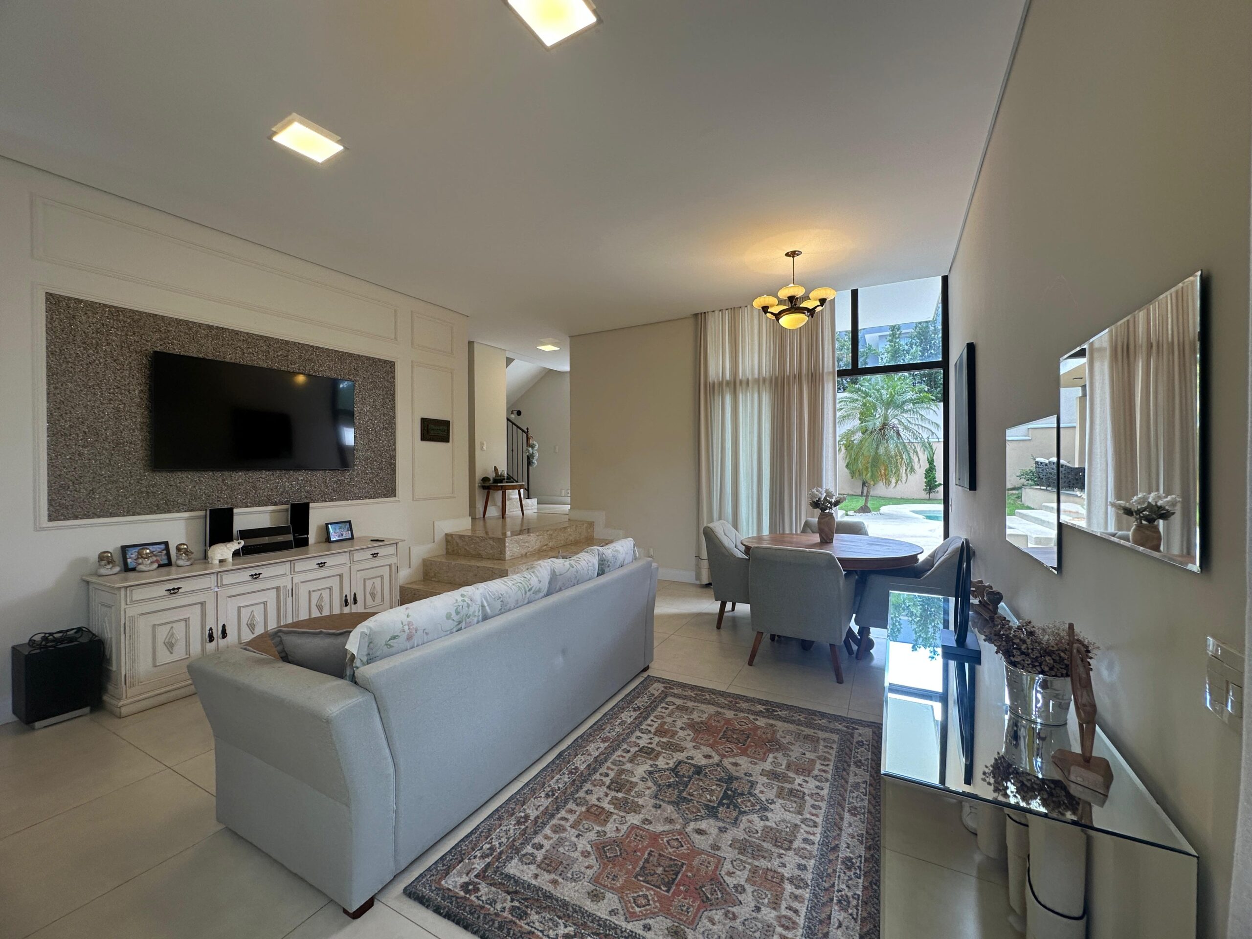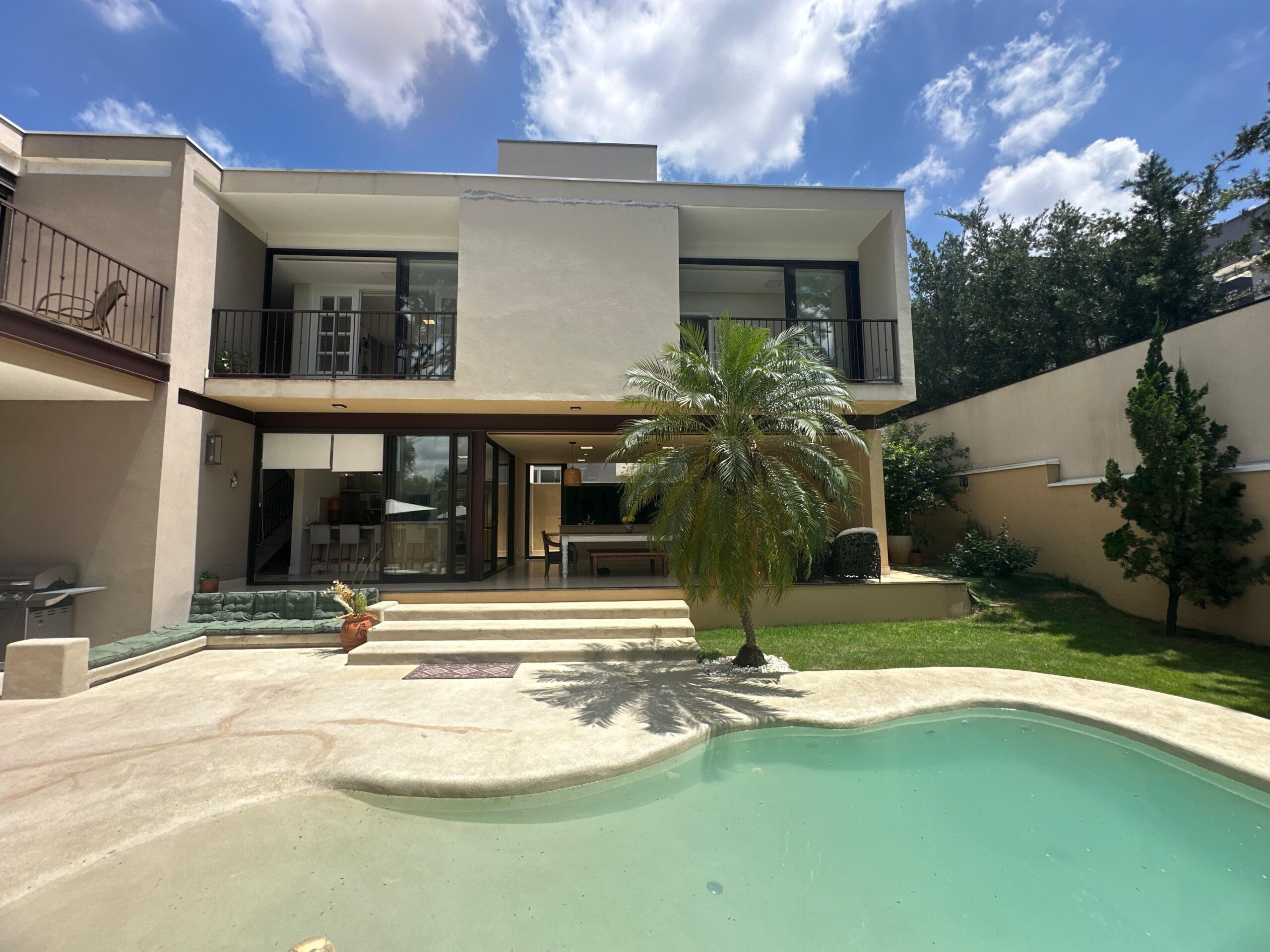 Um dos sobrados mais lindos do Swiss Park! Imóvel com diversas características que vão te encantar: casa feita em L, construida com estrutura metálica com arquitetura feita pelo Marcelo Salve. Logo na entrada temos a sala de tv com a sala de jantar/copa, lavabo, cozinha americana e espaço gourmet com vista para o lazer, banheiro de uso externo, lavandeiria, 3 suites no piso superior sendo a master com um generoso closet, sacada com vista para a area verde e um viveiro. Corredor aberto de acesso para as outras suites garantindo muita iluminação. Roupeiro e tambem um espaço de escritório para 2 pessoas. A area de lazer conta com uma piscina de piso monolítico (areia compactada) com iluminação, cascata e gramado ao redor. Possibilidade de colocar elevador (tudo esta pronto) e tambem um fireplace. A casa será vendida mobiliada. Agende ja sua visita!